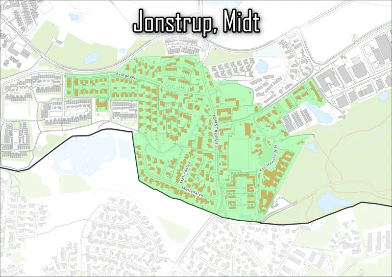 Bebyggelserne (herunder Skovbrynet) langs Laanshøj Alle er alle omfattet af projektområdet.