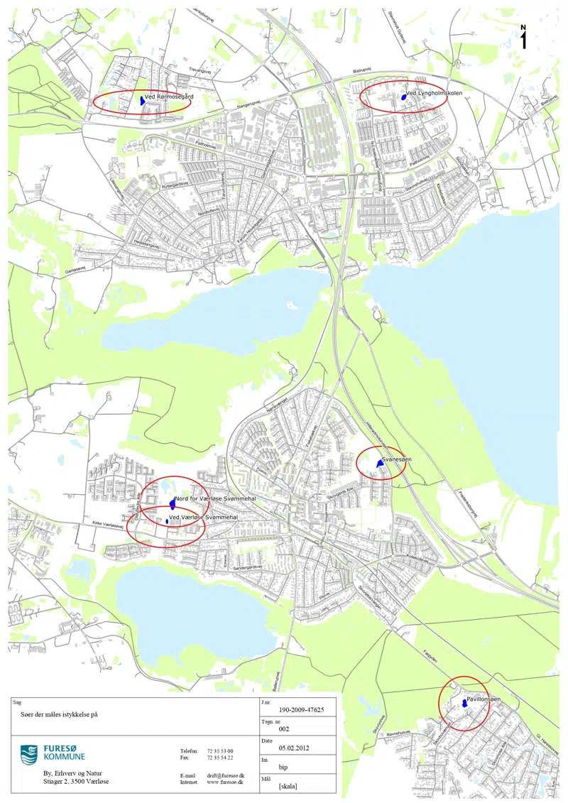 Der er ikke skiltning om færdsel på isen ved kommunens øvrige søer.